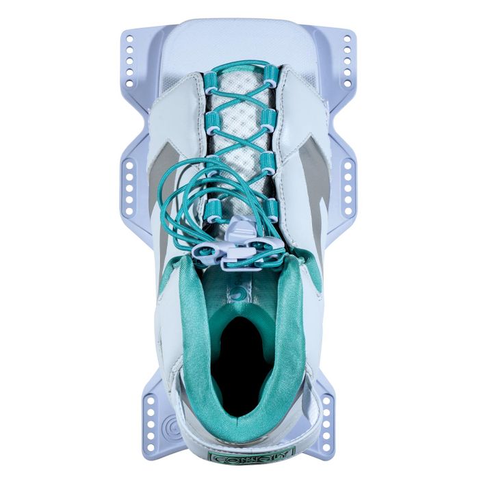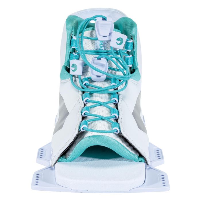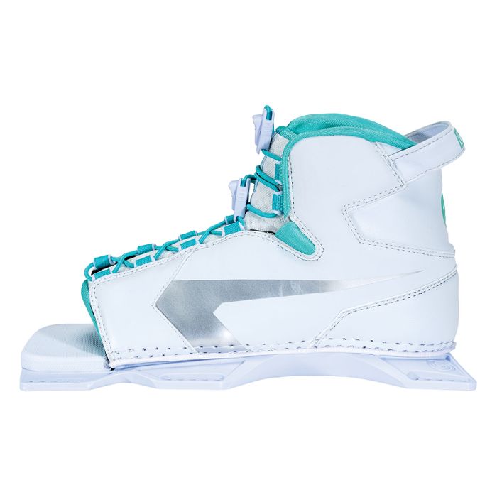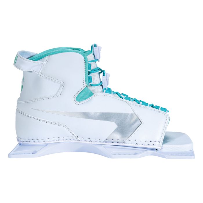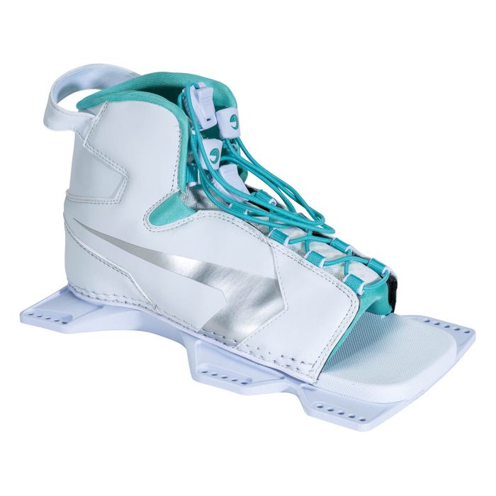 The Women’s Shadow adds a little flash to a comfortable, supportive design. A Lycra lined toe and heel wrap are molded to fit snug without causing pressure points. Laces can be loosened to open the binding wide, which makes it easy to step in and out. The floating toe will accommodate large and small foot sizes alike. The soft EVA footbed is set in our lightweight plate design for a responsive bond between you and your ski.
