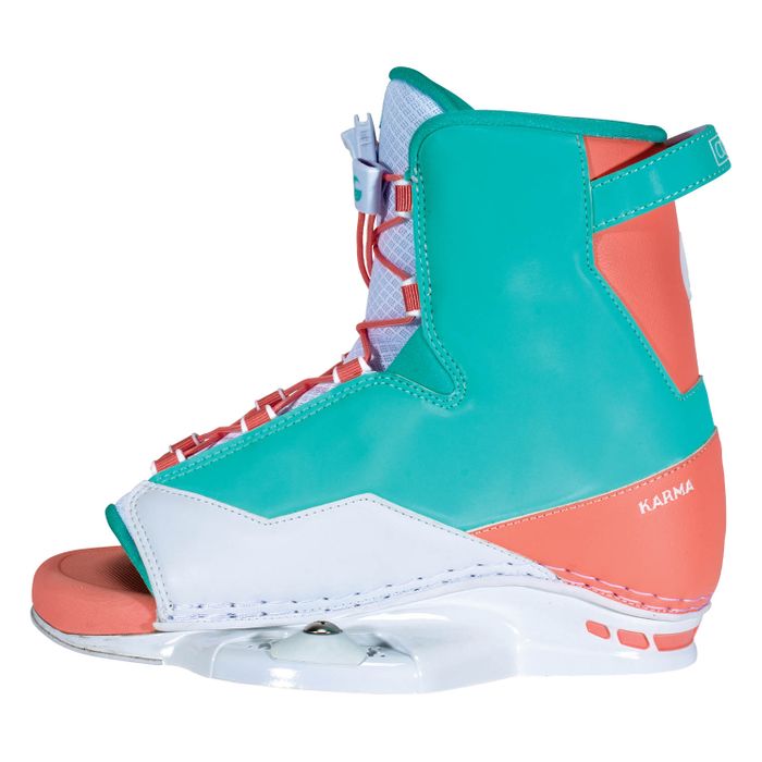 The Karma boot design can handle a wide array of foot sizes with a liner that stretches out or compacts down to the desired fit. An easy to use single lace cinches you back into an ergonomically shaped heel pocket for pro-style response. Our Infinity Plate chassis is the strongest in the industry and is fitted with a cushy EVA footbed to protect from heel bruises on hard landings.