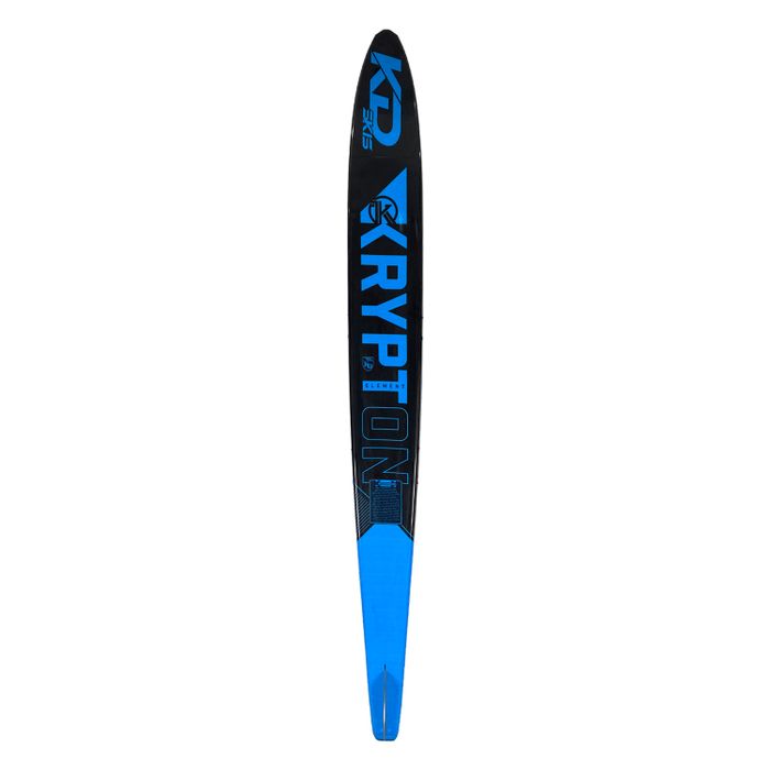 Added to the Krypton range for 2023, the all-new Fusion incorporates a machined ultralight foam aero-core. The PVC core delivers unrivalled connection and instant transitions for the skiers who are pushing their skiing to the limit. The second-generation Krypton mold utilises all the technology of our flagship Titanium, by adding two tenths of an inch from the forebody through to the tail giving the Fusion the ability to get wide of the boat without stalling. Wrapped in the perfect blend of spread tow carbon and glass fibres the Krypton Fusion delivers the most responsive and agile ski for the 30-34mph skier looking for performance both in and out of the slalom course. Improving on the first iteration, the gen II Krypton features an elongated the flat spot under the bindings and its unique tip riser step has been moved further forward, minimising tip chatter providing a balanced ride regardless of technique. The tail bevels have also been rounded further to deliver tighter, more initiative turns from any body position that feel almost automatic.