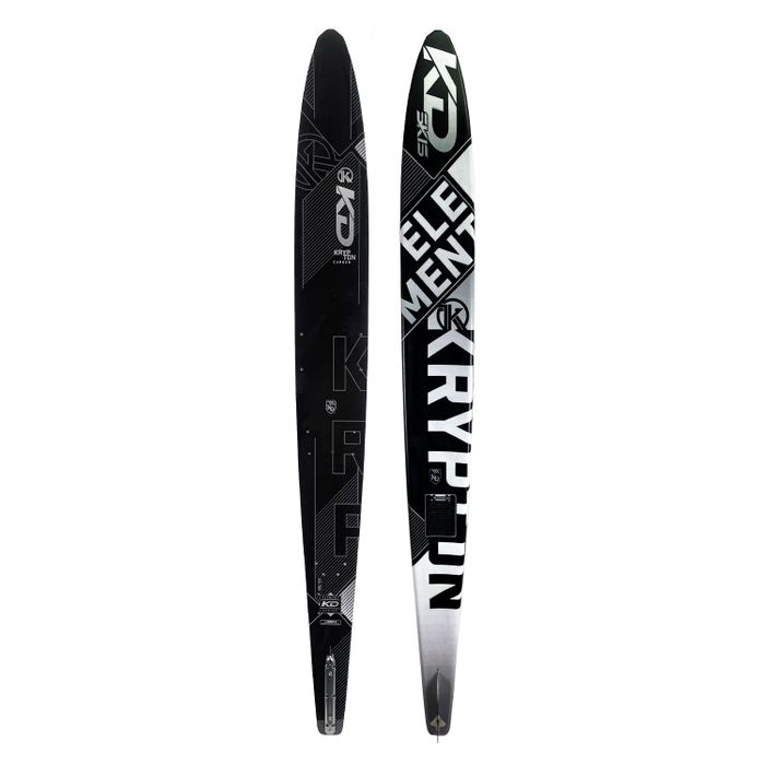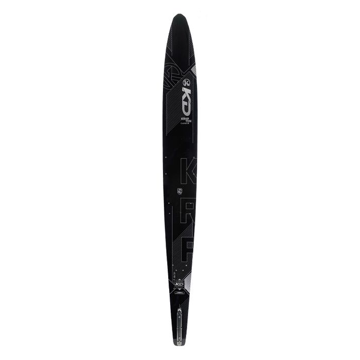 The Krypton Carbon is the middle of the range model that features the best of all three skis rolled into a price point package that’s nearly impossible to beat! With its distinctive RCD top deck allowing a full Carbon and graphite top sheet, the Krypton Carbon delivers all the torsional rigidly and explosiveness of the Fusion, with specific fiberglass zones that allow skiers of all abilities to experience tighter radius turns and huge cross course speeds without the need for a perfect technique. The Krypton Carbon uses a softer polyurethane foam core featured in the base model, its foam cells are denser, allowing the ski to ride deeper and require less effort to tighten up the skis natural turn radius. The blend of these two features makes the Carbon the most popular of the entire Krypton line-up.