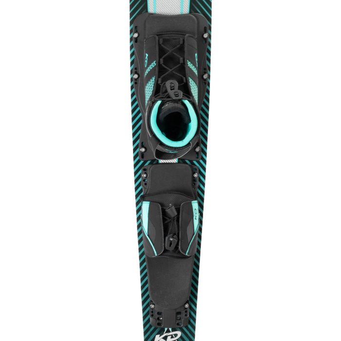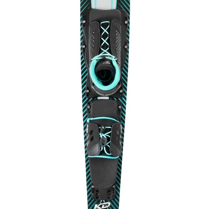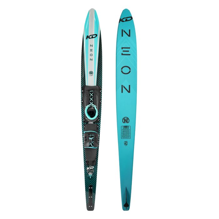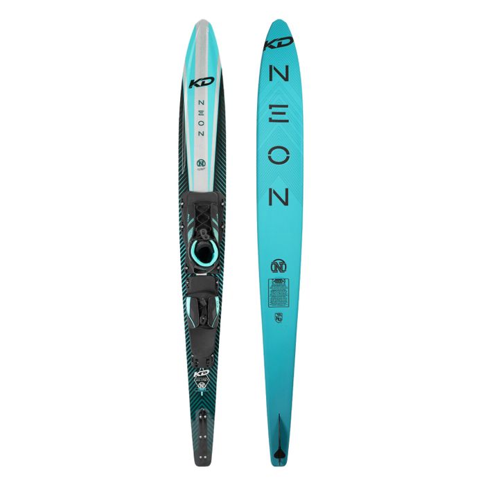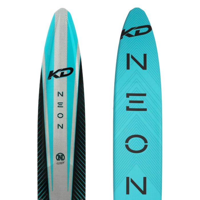 Whilst we use the shape and design characteristics of the Krypton, the Neon is specifically designed to accommodate the skiing style of the women. With its distinctive RCD top deck allowing zones of carbon strips; the Neon delivers all the torsional rigidly and explosiveness but with a softer polyurethane foam celled core that allows the ski to ride deeper, requiring less effort to tighten up the skis natural radius. The rounded bevels on the front section of the ski creates that predictable smooth feel, while the harder bevels and deeper concave under the bindings holds angle and cross course direction. The upgdated KD Neon ticks all the right boxes for the intemediate to advanced skier that wants a ski that performs as good as it looks!