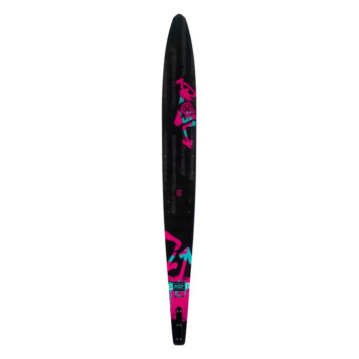 Whilst we use the shape and design characteristics of the Krypton, the Neon is specifically designed to accommodate the skiing style of the women. With its distinctive RCD top deck allowing zones of carbon strips; the Neon delivers all the torsional rigidly and explosiveness but with a softer polyurethane foam celled core that allows the ski to ride deeper, requiring less effort to tighten up the skis natural radius. The rounded bevels on the front section of the ski creates that predictable smooth feel, while the harder bevels and deeper concave under the bindings holds angle and cross course direction. The upgdated KD Neon ticks all the right boxes for the intemediate to advanced skier that wants a ski that performs as good as it looks!