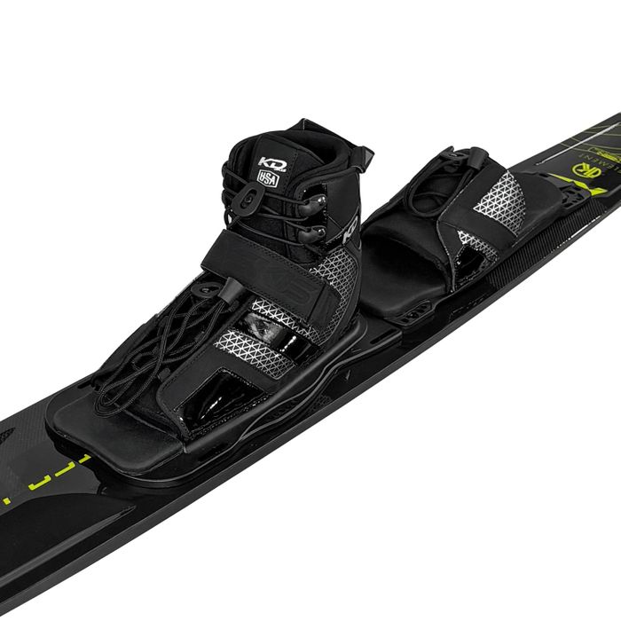 The KD Vise is the most responsive binding we’ve ever created, with its light weight composite construction that doesn’t inhibit the skis natural flex pattern of the ski everyone. It allows the skier to feel one with the ski, creating superior angles with the same comfort you’d expect from your favourite set of shoes. A deep heel pocket with achilles pillows and a symmetrical foot bed make the new Vise ideal for both feet, with a specifically designed inner and tongue design delivering a fit that is free from slippage and hot spots. Boasting a bungee cord upper for easy entry and a front lace section that allows the skier to control the amount of tension over the forefoot, the Vise binding is finished off with raised PU inner and velcro strap ensuring ultimate in responsiveness. The new Vise is the most coveted binding on the market, offering greater control without sacrificing comfort.