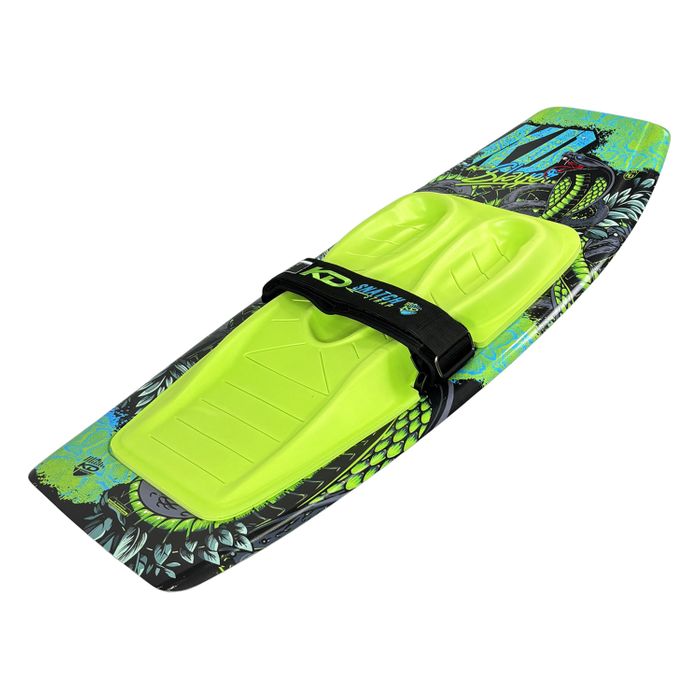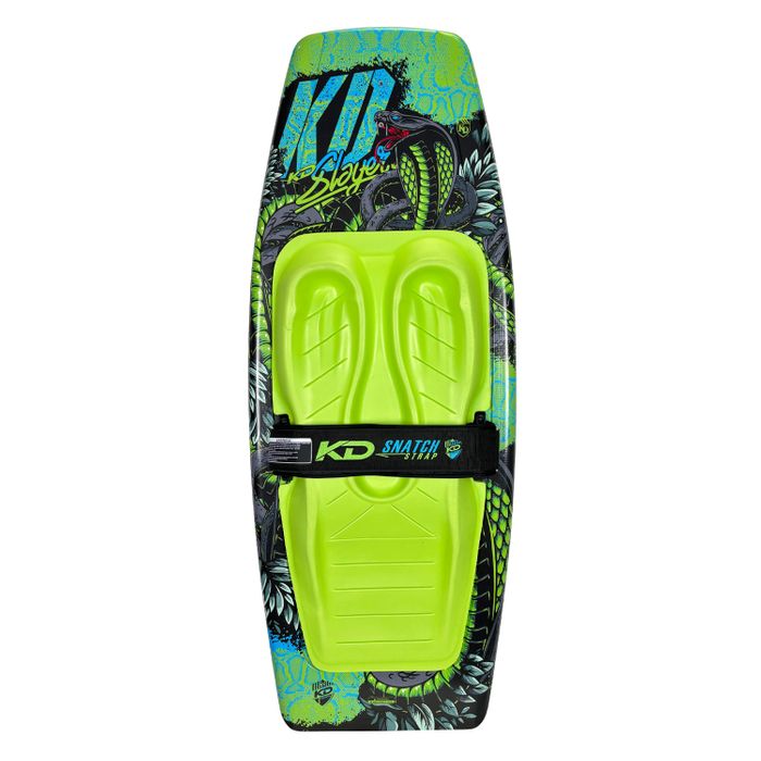 Not for the faint of heart, the KD Sports Slayer is built especially for the serious boarder who prefers the more traditional square tip and tail shape. Built using a lightweight PU foam core wrapped in cross woven fiberglass that maximises the boards potential. If you’re looking to boost from wake to wake the KD Slayer’s aggressive two stage rocker bucks like a mule, giving riders the airtime needed to start tackling back rolls and 360’s. Just as important as the Slayers ability to fly-high is it’s landing capability and that’s taken care of thanks to KD’s ergonomic pad with moulded zones for tibia/fibula and raised rear zone giving support under the legs to take pressure off the ankles allowing for ultra-soft landings. Unlike the rest of the KD Sports kneeboard range, the Slayer comes fitted with their double locking ‘Snatch’ strap that uses stiffer materials and full width Velcro for superior holding characteristics, plus an additional strap layer that allows the belt to be cinched down tighter, perfect for the rider looking to eliminate any movement or bounce for a ride that serious slays.