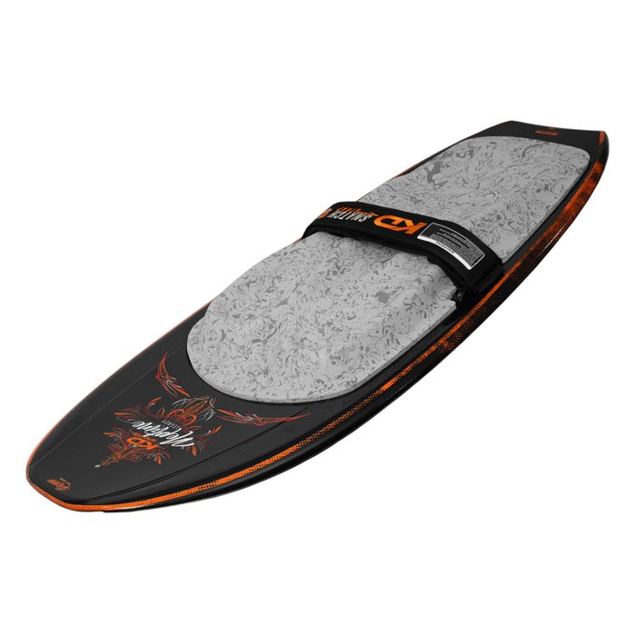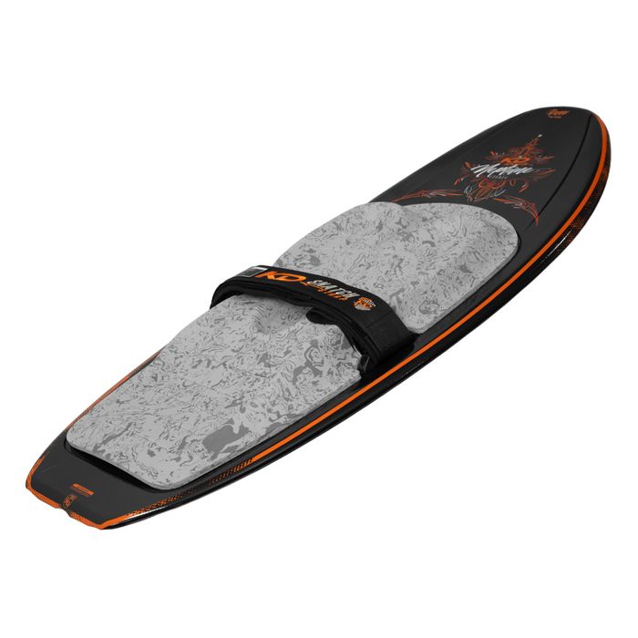When news that KD Sports had recruited visionary Frankie Panno to the head up their kneeboard team, everyone’s next thought was ‘But what will he ride?’. As a titan of the sport, Frankie has seen board companies come/go and always revered the original twin tipped Neptune shape on which KD Sports paid homage too with their own board of the same name. In true perfectionist form, Frank made the tweaks he felt it needed and from that the ‘Neptune Legacy’ was born. Starting at its heart, an ultralight ‘Procore’ that blended the right amount of mass/forgiveness needed to charge down the largest of wakes was sourced. Unlike the original Neptune that featured a blended layup, Frankie equipped the Legacy with a full carbon fibre construction to maximise the transfer of energy delivered from the blended rocker off top of the wake for unrivalled pop. Allowing a consistent line tension throughout the turn has always been crucial to how big a rider can go, and KD Sports have taken full advantage of their industry knowledge to create a unique rail and fluted tail combination that isn’t prone to blowing out when riders step up to longer line lengths need to clear larger wakes. Finished off with the same ergonomic tri-density kneepad and upgraded snatch strap found on all the premium boards in their range and you’ll see that the KD Legacy is the jewel in the crown that is fit for the king of kneeboarding himself, Frankie Panno.