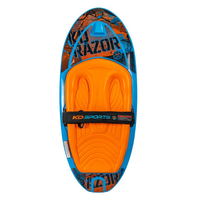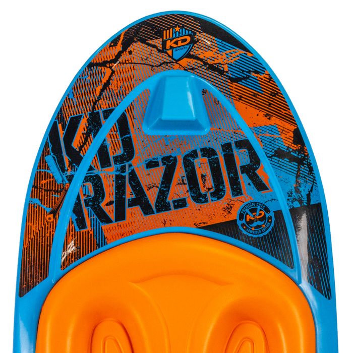 The KD Razor is the epitome of KNEEBOARDS technology, featuring the classic spoon shape that gives it a smooth, comfortable ride with lightning edge transitions. Unlike the compeition the Razor isnt some chunky board that bounces down the lake, it's thin and lightweight profile glides across the water and gives amazing pop off the wake. KD have outfitted the Razor with its bomb proof fixed hook and ultra cushioned EVA pad that makes it the perfect board to have in the boat for riders of all ages and skill levels!