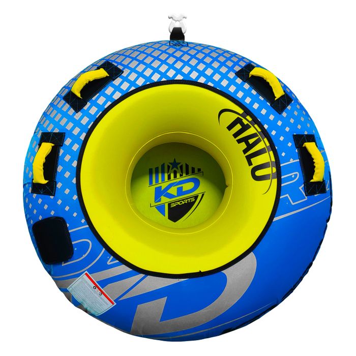 The KD Halo is a modern twist on the timeless classic donut tube that is guaranteed to provide hours of summer fun. The KD Halo is built using a heavy-duty virgin PVC inner that’s partially wrapped in a 420-denier nylon cover to save on weight and minimise drag to have you skipping round the lake. The larger 54” diameter and extra set of handles gives riders the option to either sit in or lay down. The Halo comes water ready with a matching 1P tube ROPES & HANDLES, that easily slides into the reinforced webbing quick connect, while the two-way Boston valve makes inflation and deflation a breeze. The all-new KD Halo is over spec’d and under-priced so you can afford to run doubles or even triples tubes so that all your friends to battle it out behind the boat this summer.