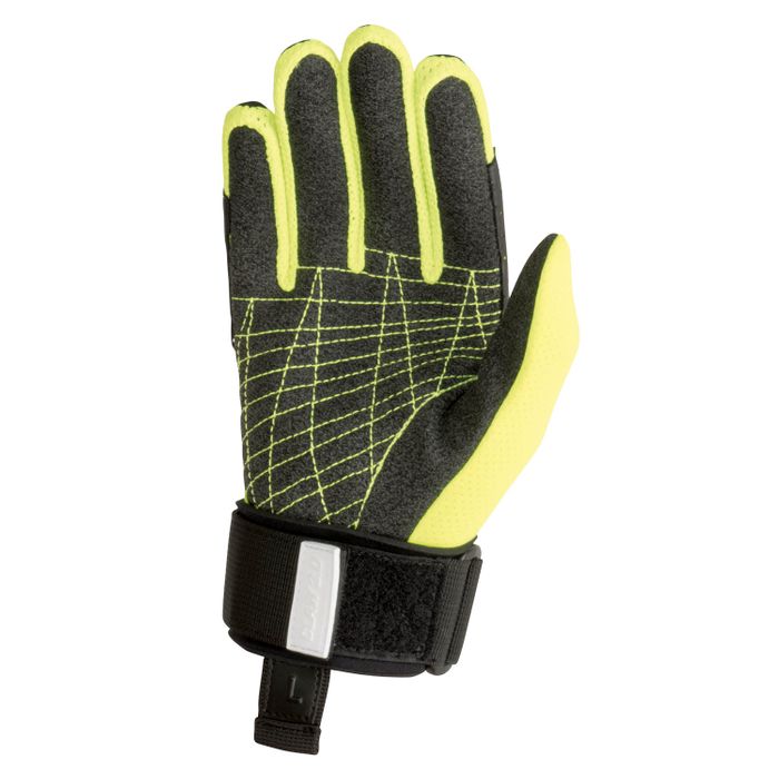 These Connelly Men's Claw Waterski Gloves are designed for extreme comfort and protection with an ergonomically stitched palm and index and pinky leather veneer EVA traction pads. The 1.5" velcro webbing strap and super accentuated pre-curved design ensure a secure hold around the wrist and fingers. With an embossed neoprene knuckle panel, these gloves provide a performance fit.
