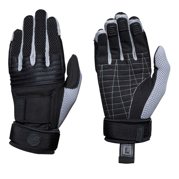 These Connelly Men's Talon Gloves feature super accentuated pre-curved fingers for the ultimate grip while waterskiing. With index and pinky leather veneer EVA pads, these gloves offer even more added handle connection. The 1" Velcro webbing strap provides a secure fit and locked wrist, while the 1.5" locking Velcro strap on the back allows quick and easy adjustments. Fully covered with Amara fabric, the gloves include embossed neoprene knuckle panels that allow for a top notch performance fit that will last for a zillion sessions (give or take a session).
