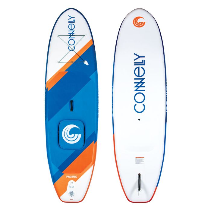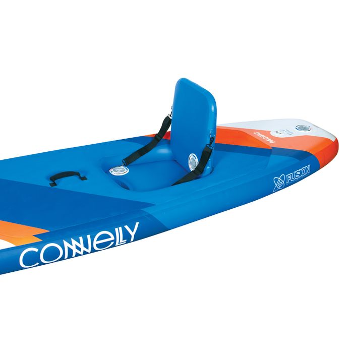 To keep things simple, the all-new Pacific is in our Stand Up Paddleboard category, even though it offers much more than just a stand-up ride. This "SUP" features a Connelly exclusive inflatable seat and backrest fitted directly into the board. When not in use the backrest lays flush with the top of the deck and out of the way. If you want to take a more leisurely on water excursion, simply lift the backrest up and adjust the straps to provide your desired level of support.